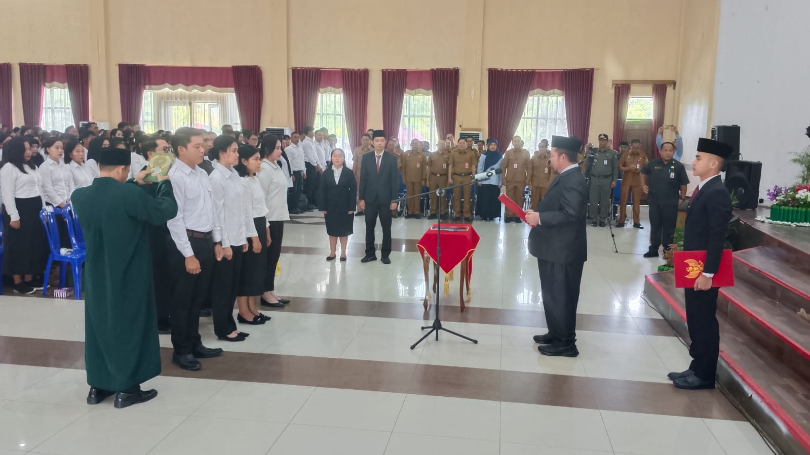 PELANTIKAN - Wakil Bupati Katingan Sunardi N.T Litang menghadiri kegiatan Pengambilan Sumpah Janji dan Bimtek PPK pada Pemilu Tahun 2024 se-Kabupaten Katingan, di Aula BPKAD setempat, Rabu (04/01/2023). (FOTO: IST)